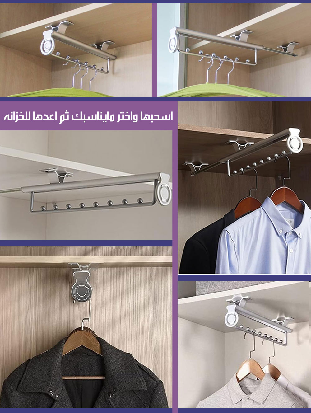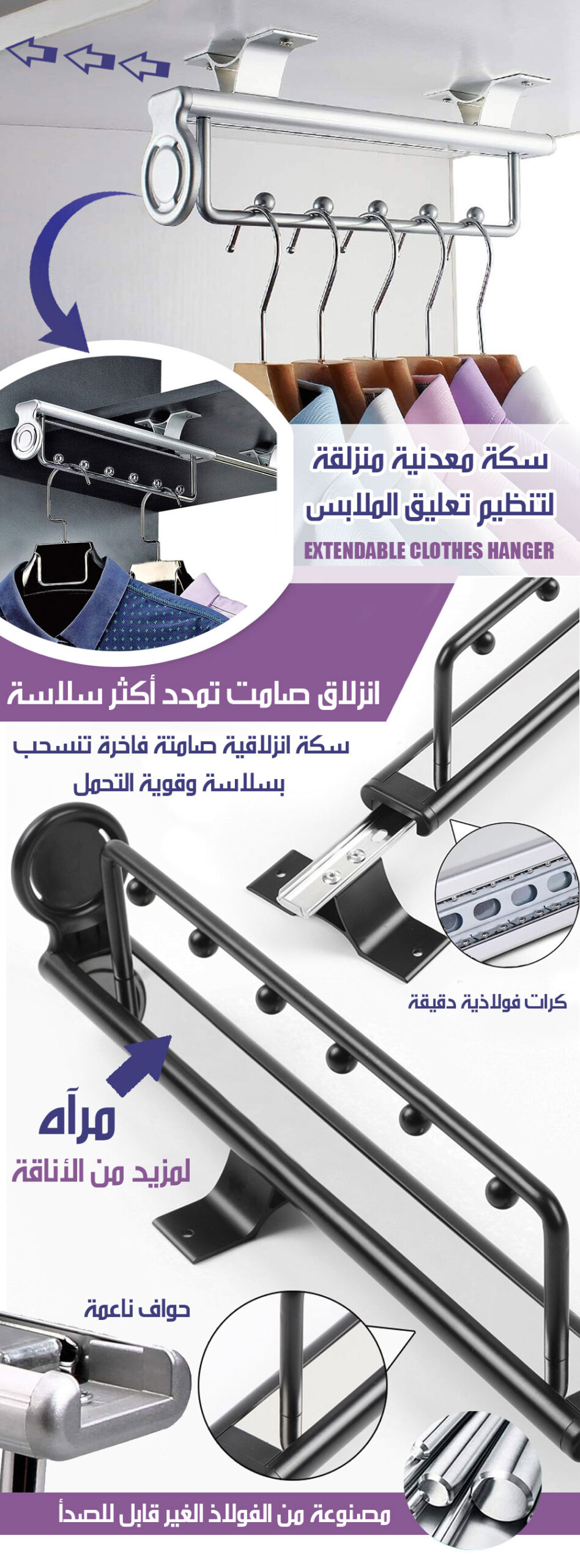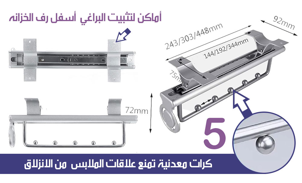 سكة معدنية منزلقة لتنظيم تعليق الملابس
