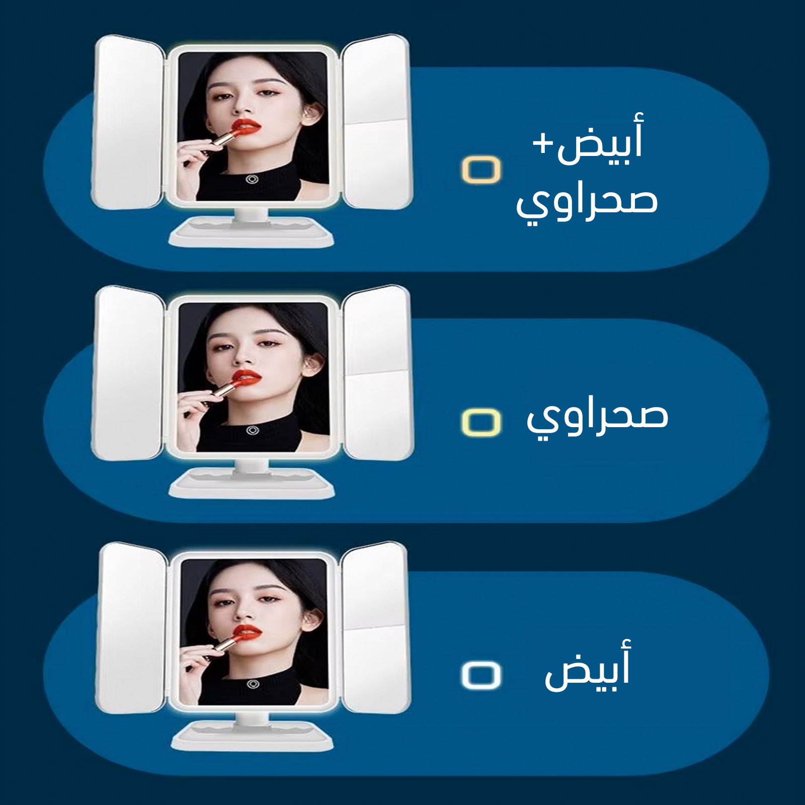 مرآة مكياج بإضاءة ليد